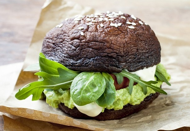 Am besten eignet sich der Portobello-Pilz, der auch als Riesenchampignon bekannt ist, wenn er vorher kurz gegrillt oder angebraten wird.