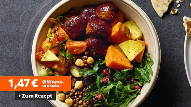 ... sind crossfunktionale und günstige Hauptzutaten – perfekt für einen kleinen Warenkorb, mit dem du verschiedene Rezepte umsetzen kannst. Zwei beliebte Top Dish Ideen: Bowls und exotische Spezialitäten. Biete die Rezepte als Tellergericht und Take-away-Version an – mit faschierten Bällchen, vegetarischen No Meatballs oder unseren No Chicken Chunks.