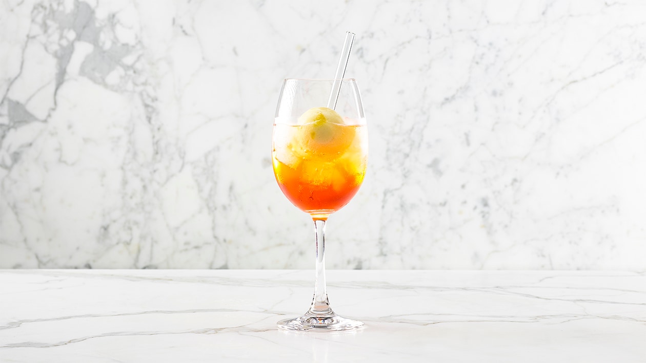 • Glas mit Aperol, Mineral und Prosecco befüllen