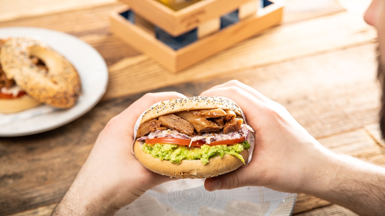 BBQ NoChicken Bagel mit veganem Coleslaw