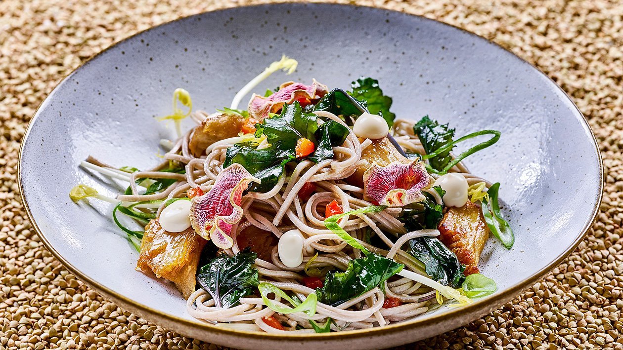 Buchweizen Nudelsalat mit NoChicken Chunks & Limonen Sauce