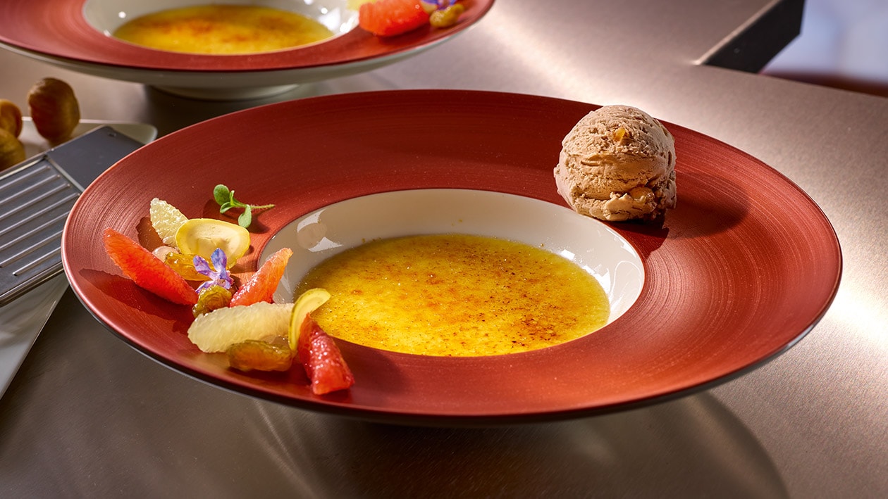 • Bei Bedarf die Creme mit dem Vollrohrzucker abflämmen.