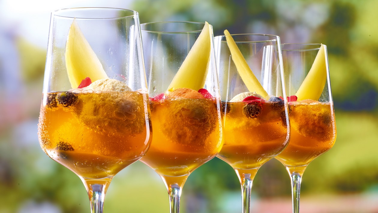 • Das Glas mit dem Crodino auffüllen und mit den Rosenblättern garnieren.