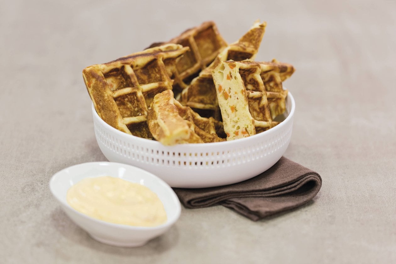 Eat by walking Kartoffel-Gemüsewaffel mit dreierlei Dip-Saucen