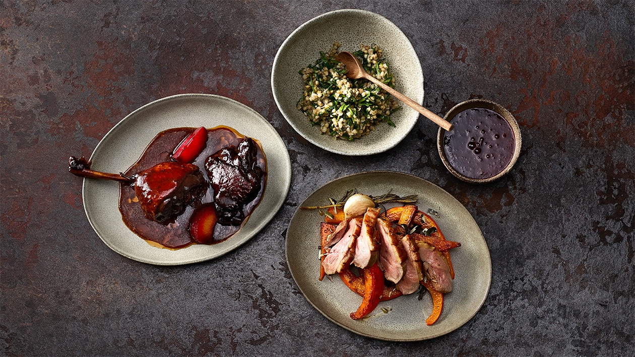 Ente in Zwetschgensauce mit Puschlaver Buchweizen und Kürbis