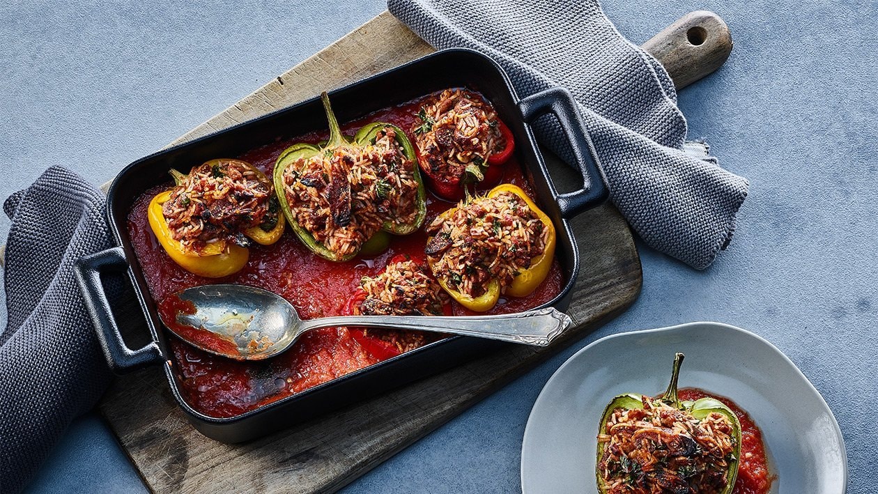 Gefüllte Paprika mit NoMince, Reis und getrockneten Feigen