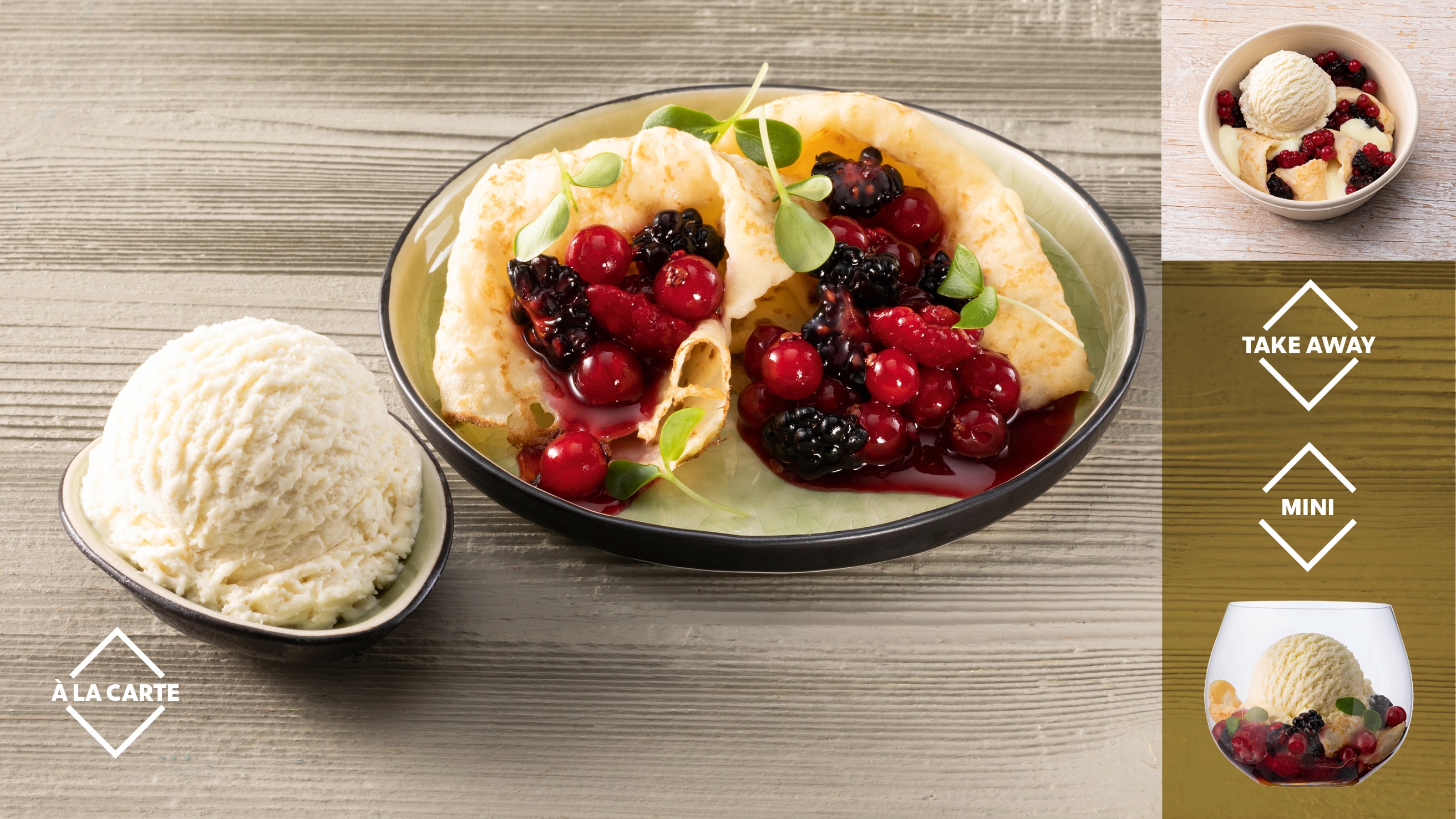 Gefüllter warmer Crêpe mit Beerenfrüchte und Bourbon Vanille Eis