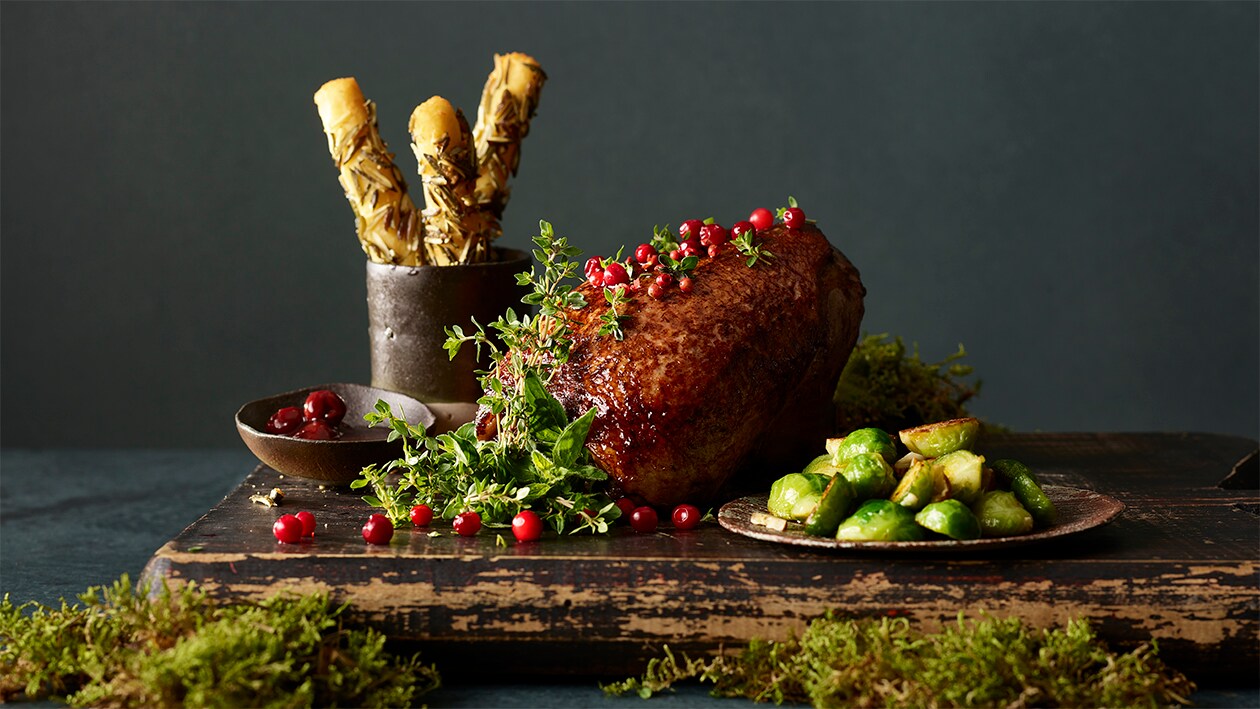 Glasierte Ente mit Kürbiskern-Kroketten und Kohlsprossen