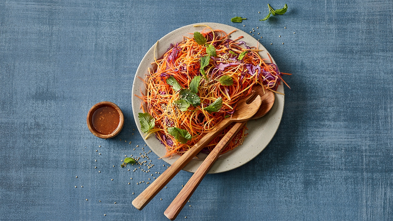 Karotten-Rotkraut-Salat mit Sesam-Soja-Vinaigrette
