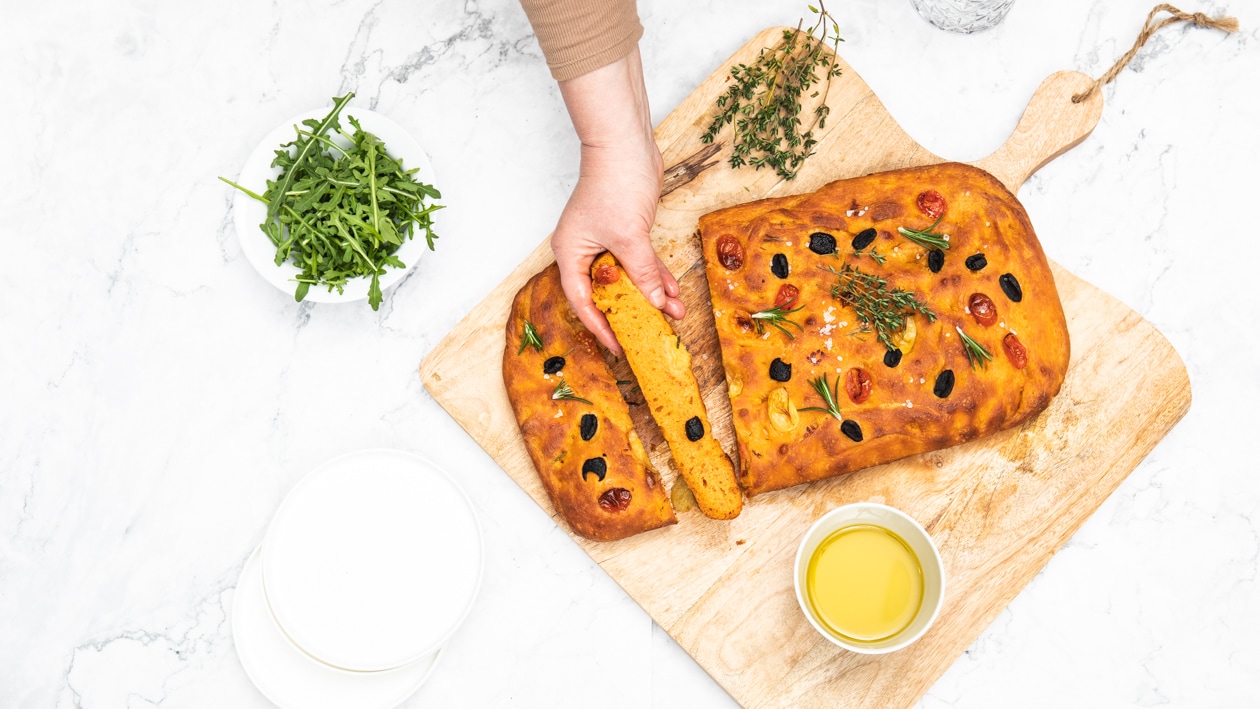 Kartoffel - Tomaten Foccacia mit Oliven und Meersalz