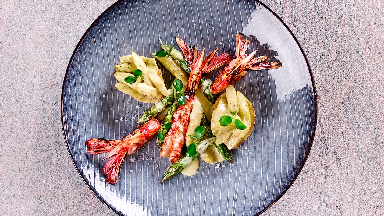Lauwarmer Spargel Salat / Cremiges Kräuter Dressing / Carabineros
