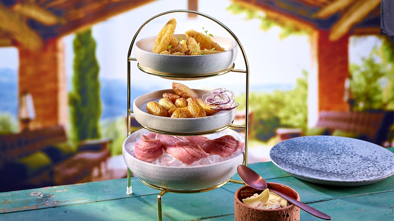 • Den Matjes mit dem Spargel und den Kartoffeln anrichten.