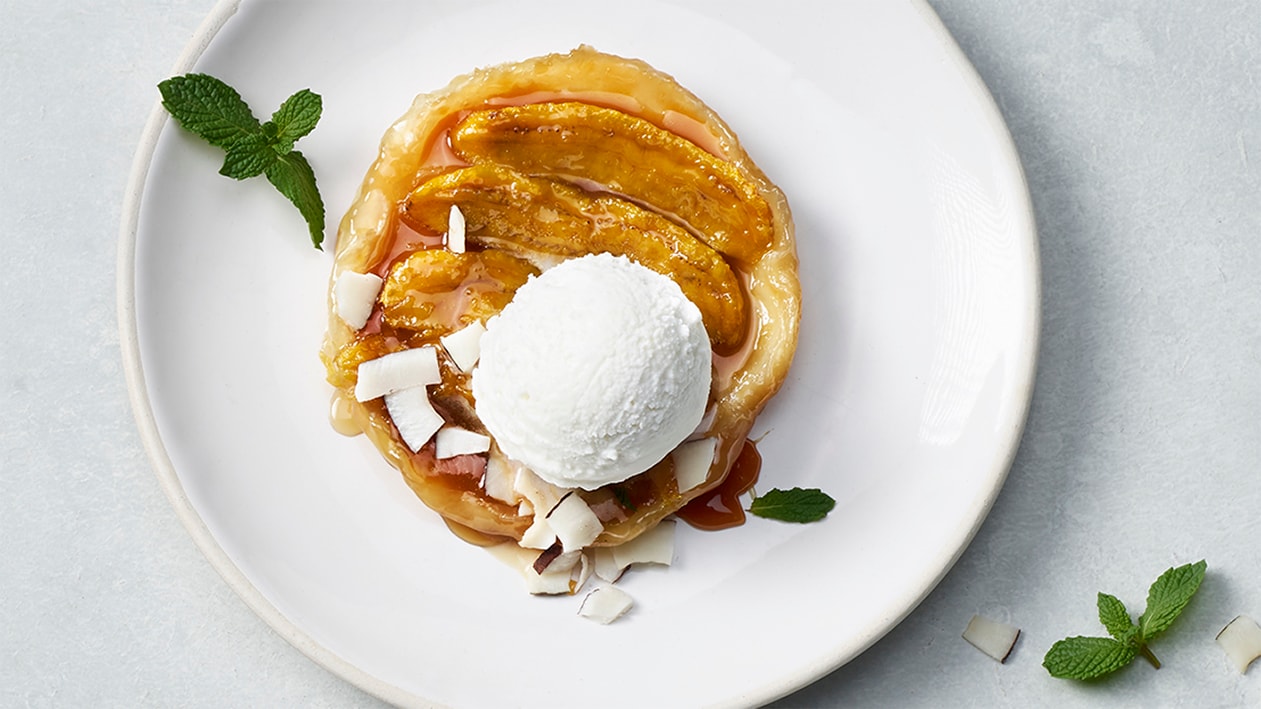 • Tarte anrichten Glace auf dem Crumble anrichten
