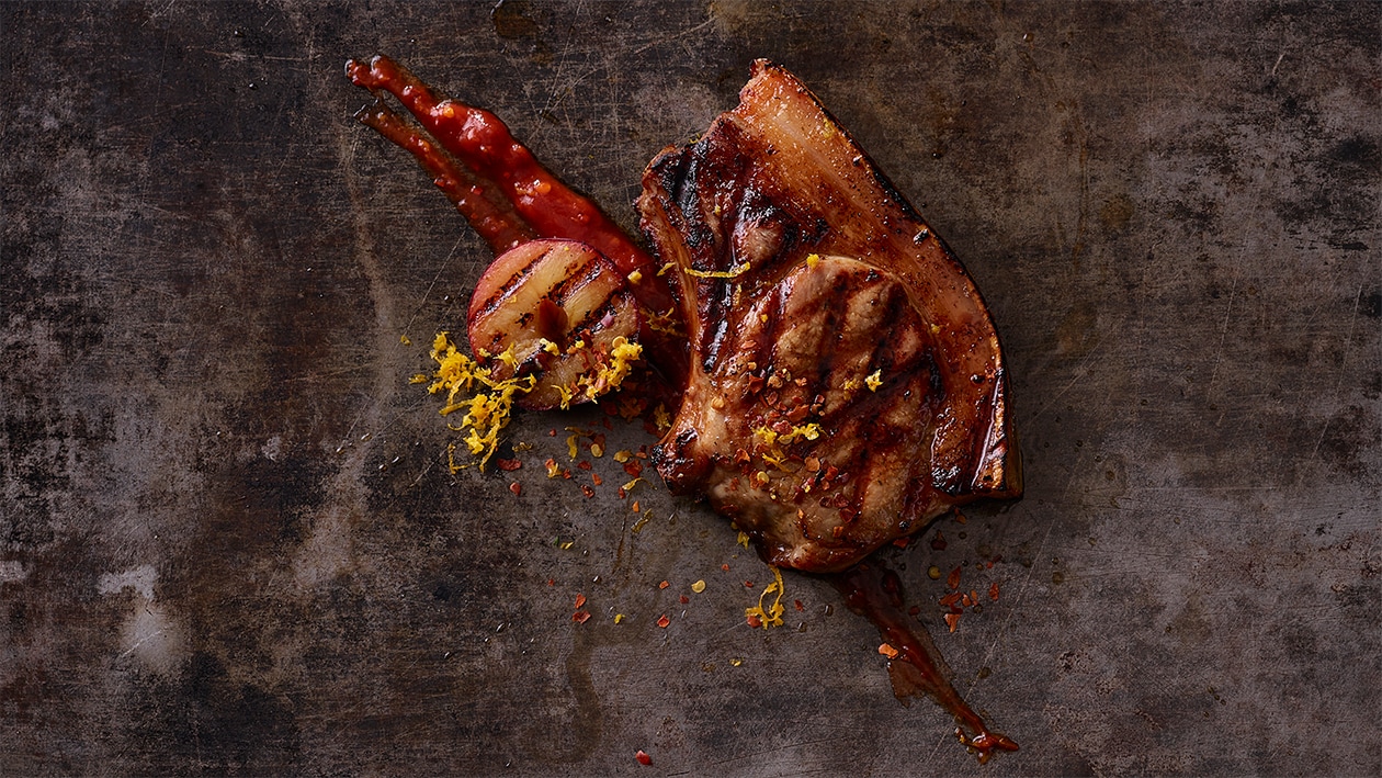 Schweinekoteletts vom Grill mit Zwetschken-Ketchup