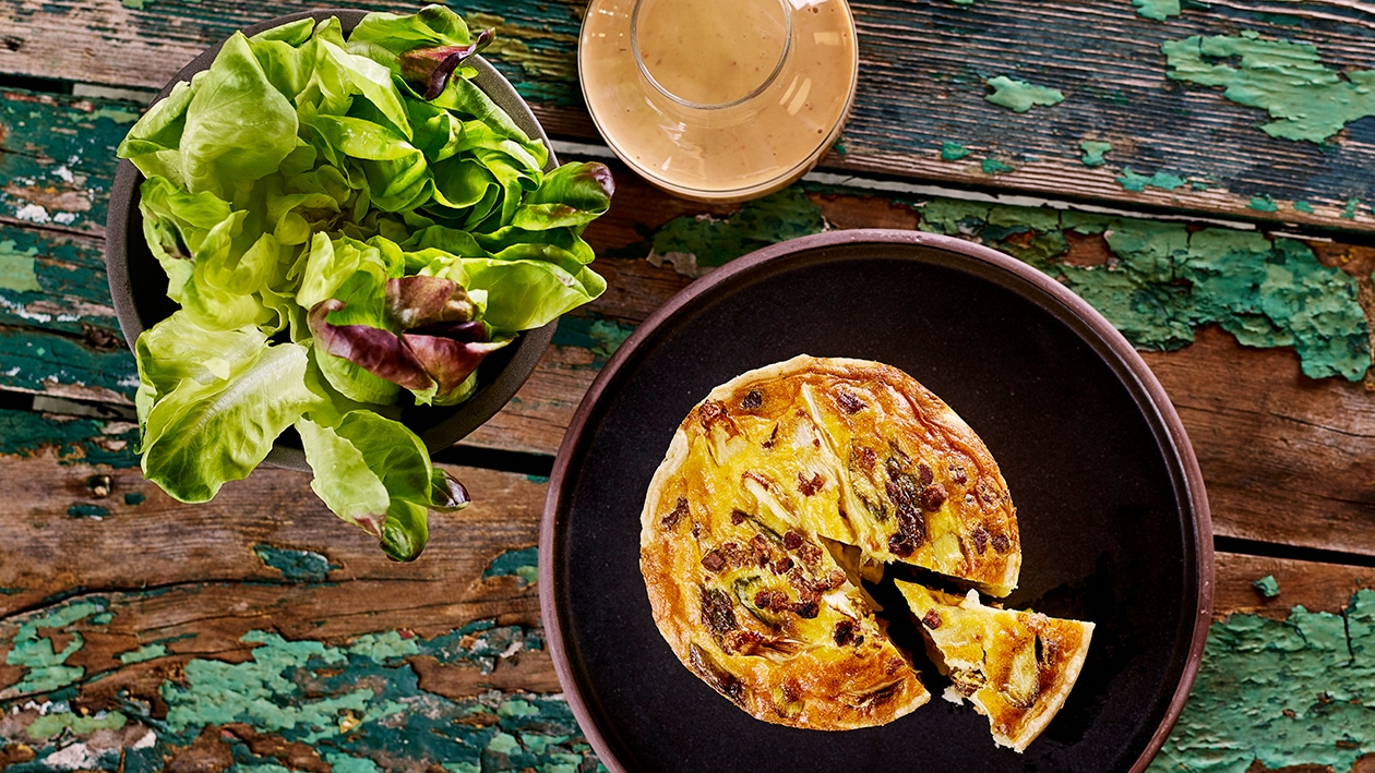 • Danach die Spargelquiche in Stücke schneiden und servieren.