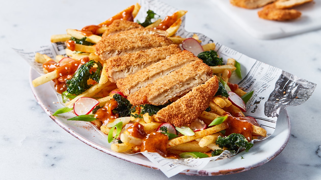 The Vegetarian Butcher - No Schnitzel mit Currysauce und Pommes