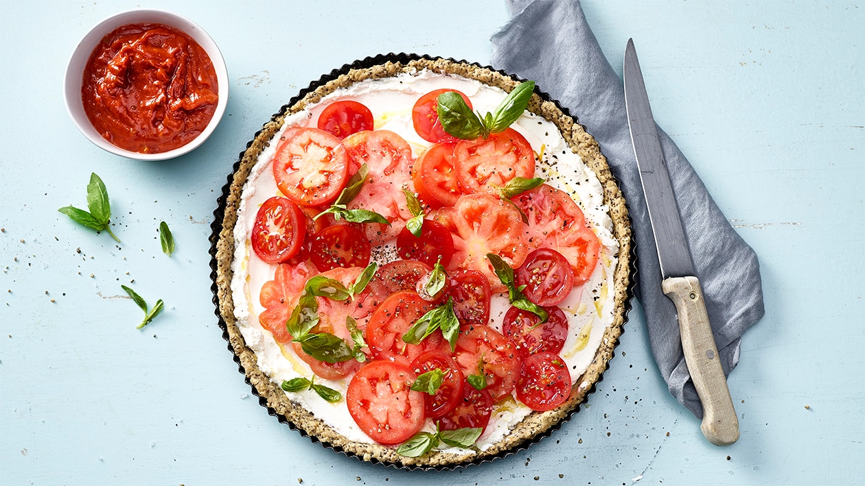 Tomaten Ricotta Haferteig Tarte mit fruchtiger Salsa
