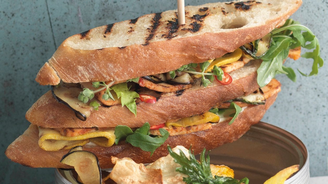 Veganer Club-Sandwich mit Chips