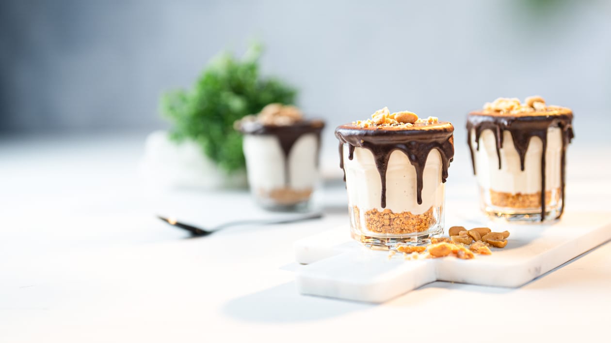 Veganer Kokos Cheesecake im Glas mit Crunchy Schokoladetopping