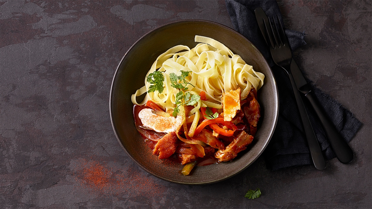 Veganes Stroganoff mit Tagliatelle