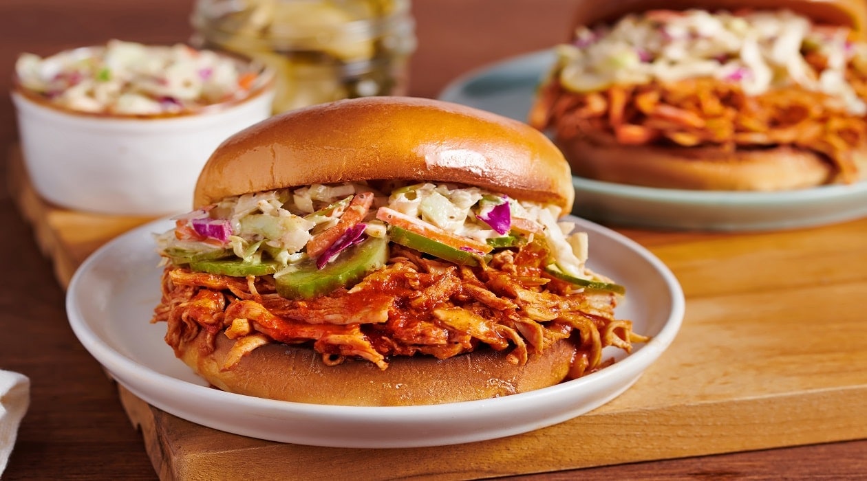 Würziges BBQ-Hähnchen-Sandwich mit cremigem Coleslaw