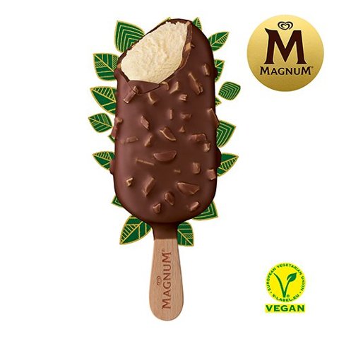 Veganes Vanilleeis umhüllt von veganer Schokolade und Mandelstückchen. Jetzt mit Rezeptur