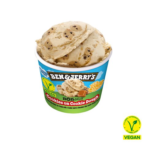 Veganes Karamell-Eis mit Cookie Swirls & Cookieteig-Stücken und kakaohaltigen Chunks
