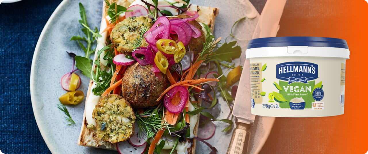 Dass die weltweit führende Mayonnaise-Marke* auch ohne Ei begeistern kann, beweist die Hellmann’s Vegan mit ihrem typischen Hellmann’s Original Mayo-Geschmack. Durch ihre Vielseitigkeit ist die Kaltsauce eindeutig mehr als eine vegane Pommes Sauce und dadurch für alle Bereiche der Gastronomie – vom Restaurant bis zur Kantine – geeignet.