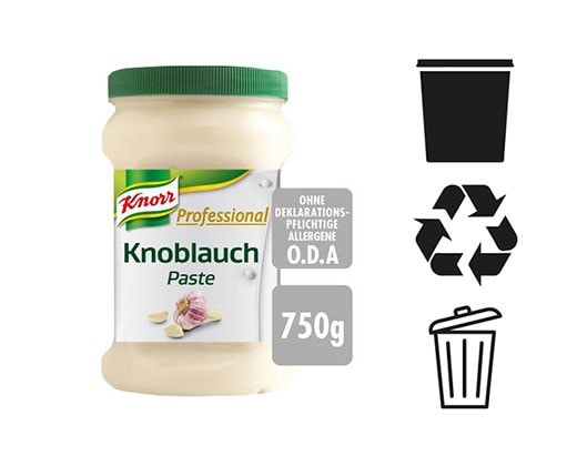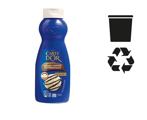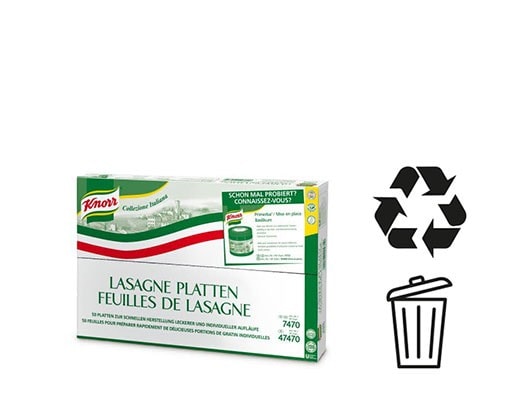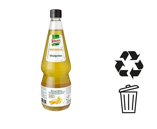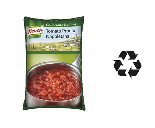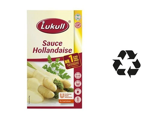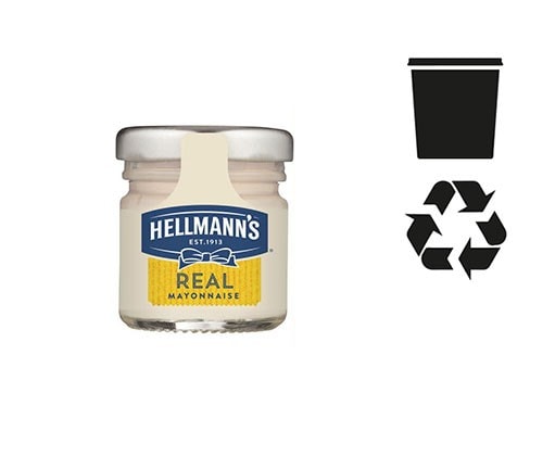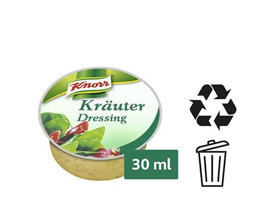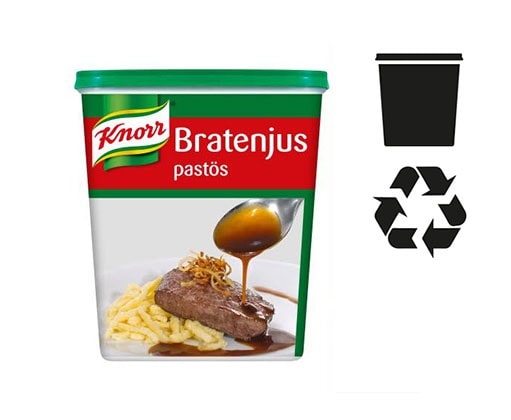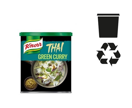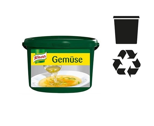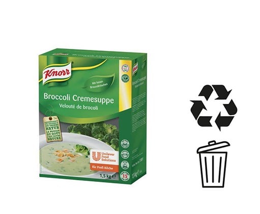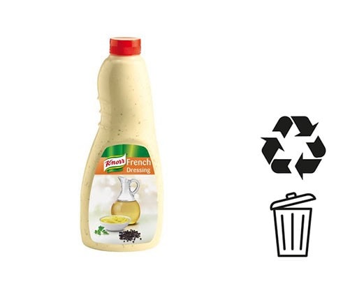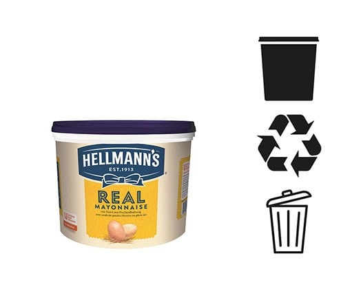 Neben dem „please recycle“-Logo sind auf der Verpackung jedes Unilever Food Solutions-Produkts klare Anweisungen zur Handhabung jeder gebrauchten Verpackungskomponente angebracht.