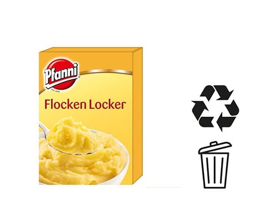 Entsorgung - wo gehts: Kartonbanderole ins Altpapier und Container, sowie Deckel und Verschluss in die Wertstofftonne; Deckel und Container können wiederverwendet werden (Gefrierstabil).